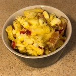 Я предпочитаю вариант с нарезкой ингредиентов, получается и как салат, и как добавка на хлебцы. -