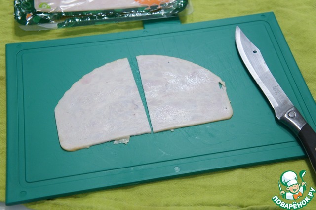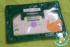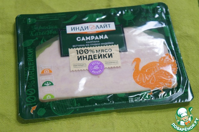 Ветчину я использовала из индейки. Такая пачка 59 рублей.