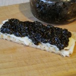По старой традиции, намазываю ржаной хлебец Круазетт сливочным маслом и кладу щедрую порцию "черной икры")))