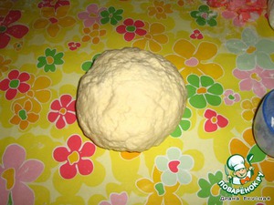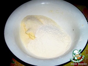Беру 6 стаканов муки и руками смешиваю его с уплотненным маргарином, затем заливаю смешанную простоквашу и соду, и замешиваю тесто.