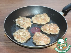 8. На горячую сковороду, смазанную подсолнечным маслом, выкладываем порции фарша.