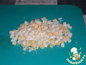 Подготовим продукты. Куриное яйцо отвариваем в подсоленной воде. Остужаем и очищаем.