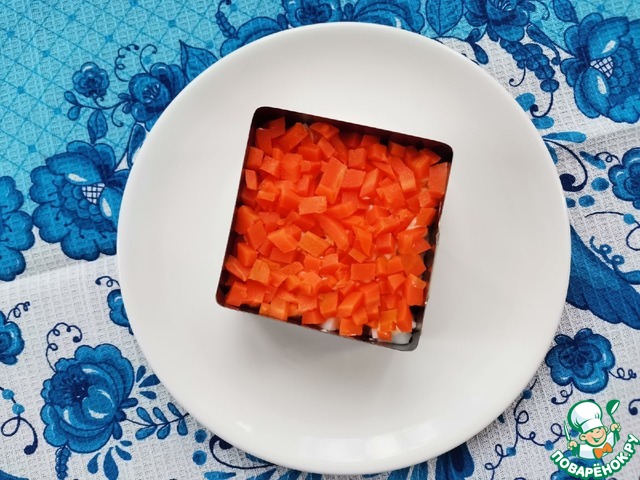 4.- Мелко нарезать морковь. + Майонез.