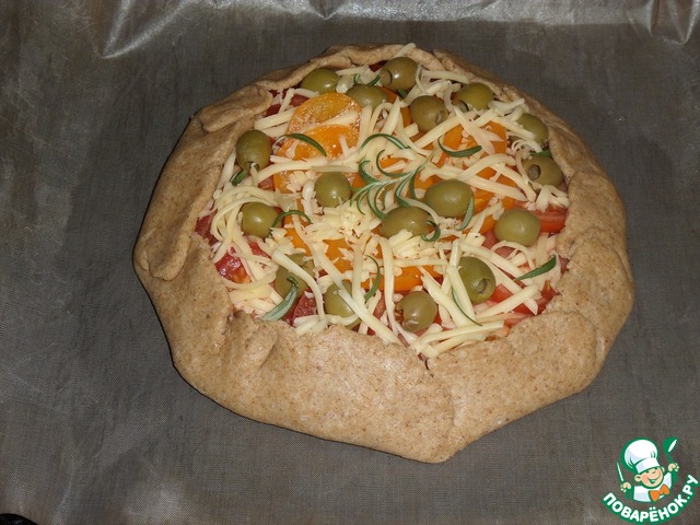 • Вынимаем противень с галетой из духовки. Поверхность галеты посыпаем оставшимся сыром.