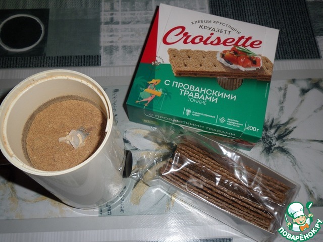 • Хлебцы разламываем на кусочки и выкладываем в кофемолку или чашу блендера.