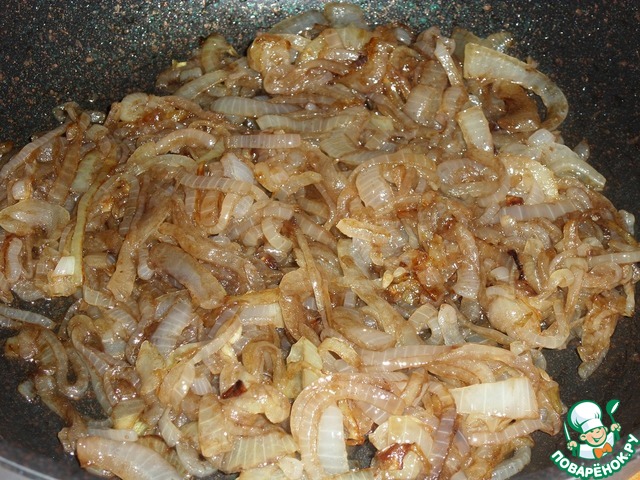 • Обжариваем лук в течении 8-10 минут на среднем огне, помешивая массу кухонной лопаткой.