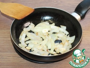 • 6. Очищенные: репчатый лук и чеснок нарезаем и обжариваем на растительном масле до "прозрачности".