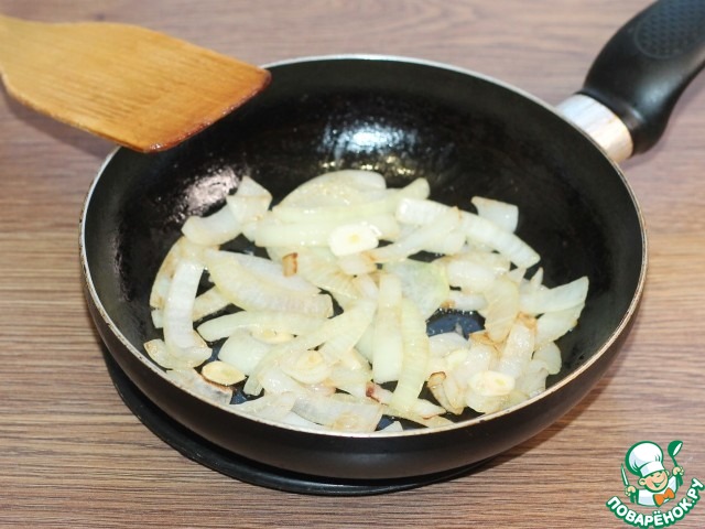 6. Очищенные: репчатый лук и чеснок нарезаем и обжариваем на растительном масле до "прозрачности".