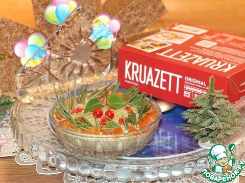 Такую закуску можно подать на праздничный стол или просто порадовать своих близких на обед. К такой закуске, я предлагаю подать тонкие и хрустящие хлебцы Kruazett.