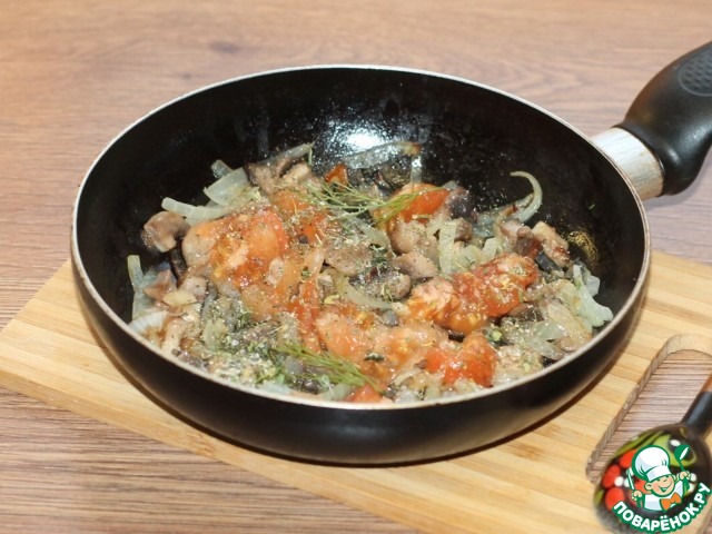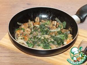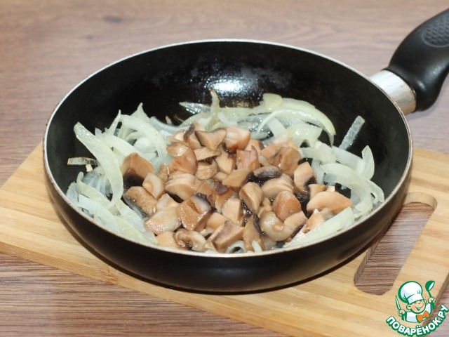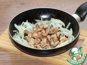 4. Добавляем порезанные грибы, обжариваем минут 5.