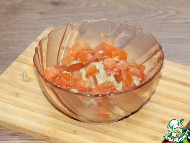 8. Паштет охлаждаем и перед подачей смешиваем с кубиками помидора.