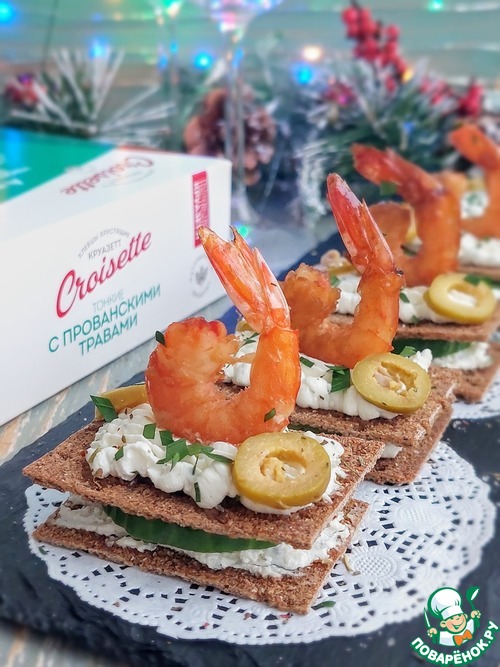 Канапе это маленькие праздничные бутерброды, которые всегда пользуются популярностью у гостей. Предлагаю приготовить канапе из хлебцев Kruazett с творожным сыром, свежим огурцом, креветками и оливками. Они точно разнообразят любое праздничное застолье. Получаются вкусными, выглядят аппетитно! Угощайтесь!
