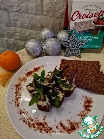 Смазать хлебцы Kruazett с прованскими травами получившейся смесью обильно. Дать им пропитаться, чтобы хлебцы стали мягче (можно предварительно немного смазать майонезом, тогда хлебцы быстрее размякнут).