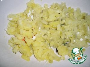 Нарезаем картошечку небольшими кусочками или натираем на крупной тёрке