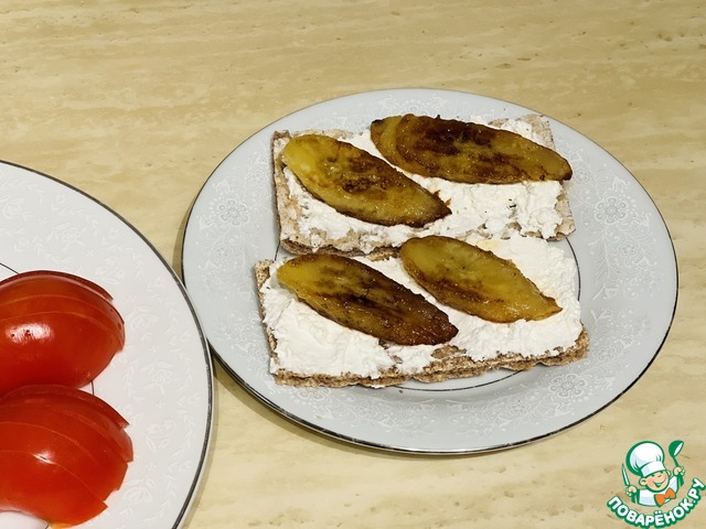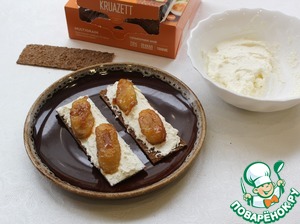 • На хлебцы Kruazett намажьте творожную массу, сверху выложите карамельный банан.