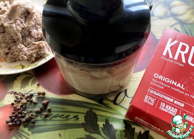 Ржаные хлебцы отдельно измельчите вместе с 50 г растопленного сливочного масла. Добавьте 2-3 ст л кипячёной воды и хорошо перемешайте.