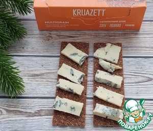 Голубой сыр нарезать дольками, разложить на хлебцах.
