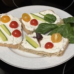 Возьмите тонкие хлебцы Круазетт, намажьте паштетом. Украсьте по вкусу.