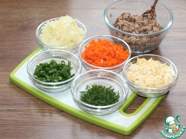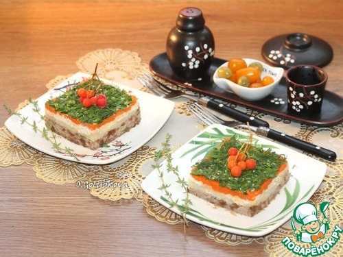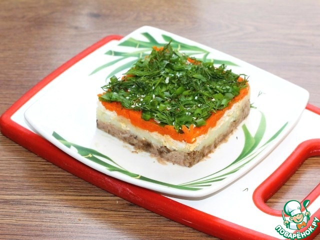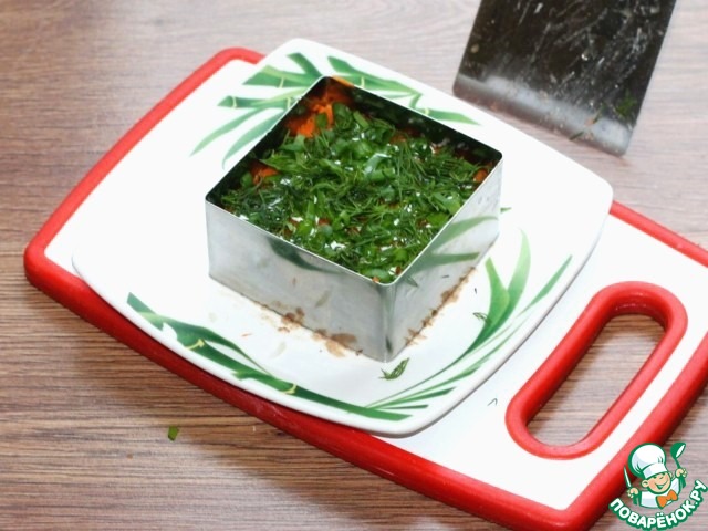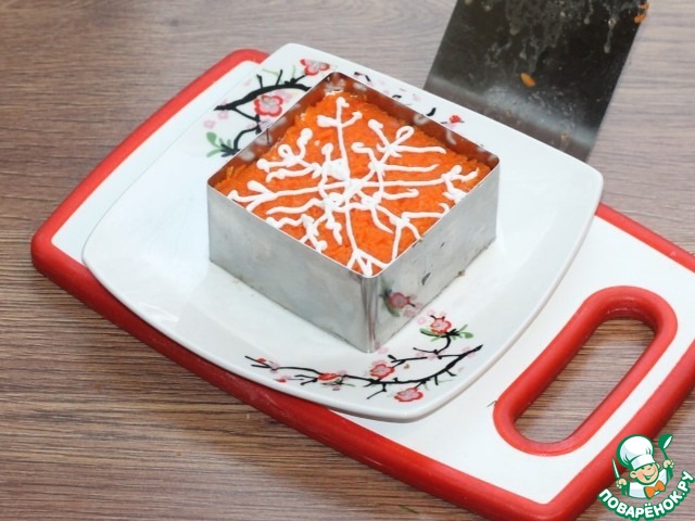 11. 4 слой - морковь, немного присолить и поперчить + майонез.