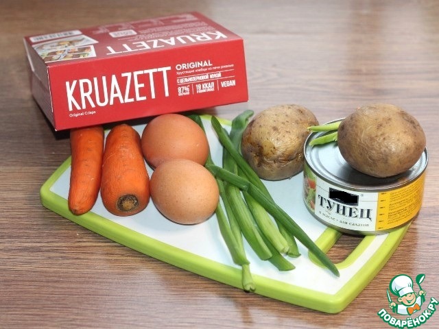 Ингредиенты для «Салат с тунцом, хлебцами и овощами»: