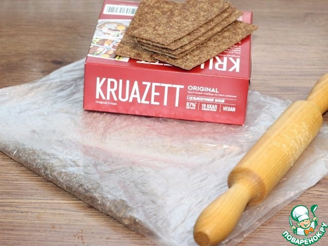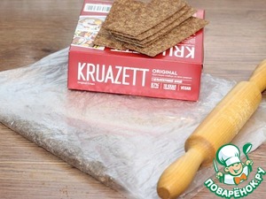 2. Ломаем хлебцы и кладем в пакет, измельчаем скалкой.