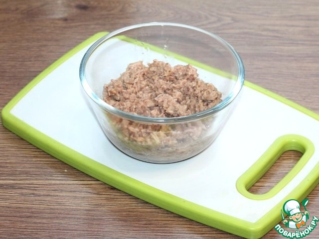 5. Из банки с тунцом сливаем масло от 4-5 ст. л..