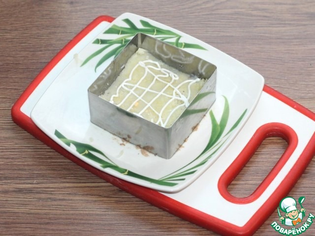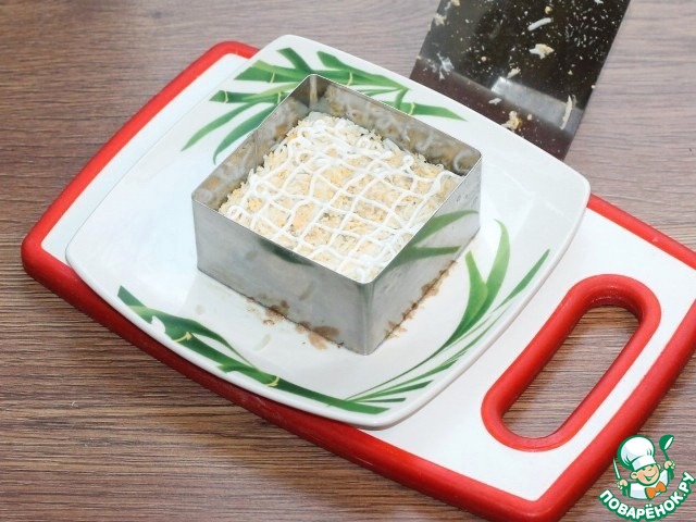 10. 3. слой - яйцо, немного присолить и поперчить + майонез.