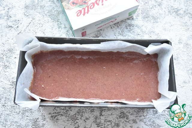 Форму для запекания выстилаю силиконизированной бумагой и переливаю печеночную массу.