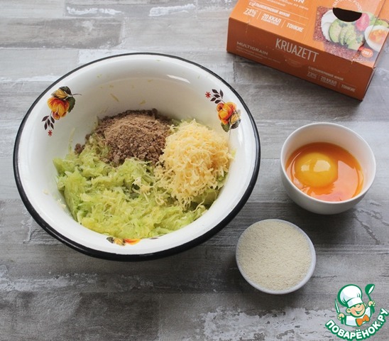 Кабачки натрите на средней терке, жидкость от кабачков слейте.