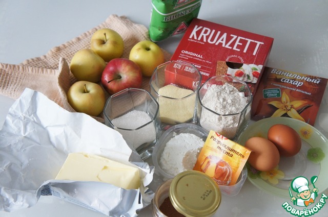Ингредиенты для «Яблочно-творожный пирог с хрустящей крошкой»: