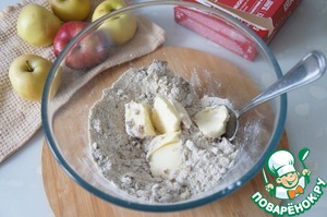 Подготовьте продукты. Масло заранее выньте из холодильника. Яблоки помойте. Включите духовку разогреваться.