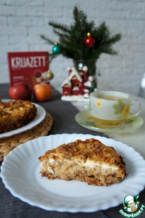 Рецепт «Яблочно-творожный пирог с хрустящей крошкой»: