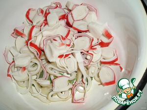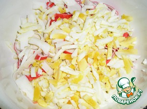 Режем приличными кусочками крабовые рулеты