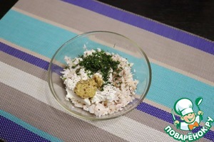 Добавить к рыбе сливочный сыр, горчицу с зернами (баварская), нарезанный укроп, соль, перец, сок лимона по вкусу. Перемешать до однородности.