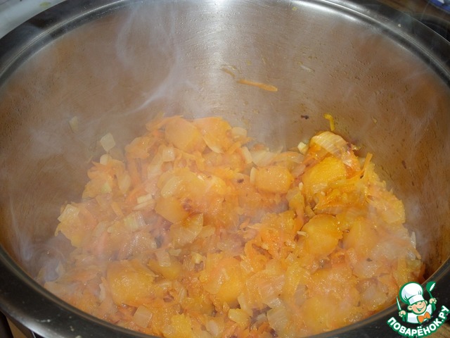 Обжариваем овощи 8-10 минут, помешивая ложкой.