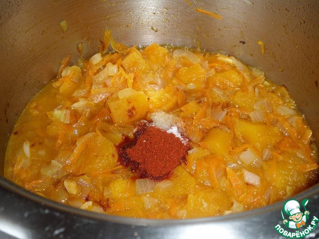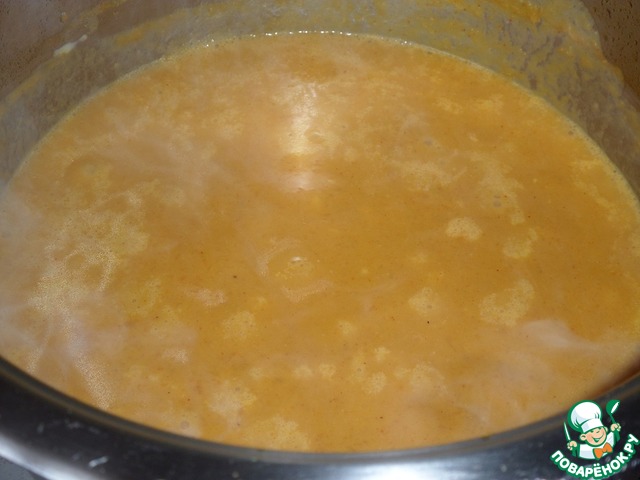 Рецепт «Тыквенный суп с колбасками и хлебцами»: