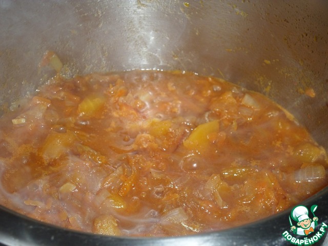 Доводим содержимое кастрюли до кипения. Варим 2-3 минуты. Затем убираем кастрюлю с огня.