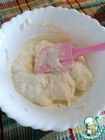 Потом соединить тесто с обеих мисок, добавить молотые хлебцы Kruazett с прованскими травами.