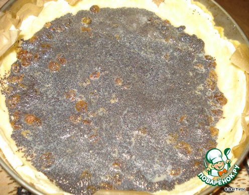 Смешать яичный желток, муку, разрыхлитель, масло, сахар и ванильный сахар. Быстро замесить песочное тесто и убрать его на холод. Промыть в горячей воде изюм, обсушить. Перемолотый мак смешать с сахаром, цедрой лимона и корицей.