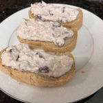 Вкусная паста-намазка для бутербродов. Подача на ржаных хлебцах уменьшает калорийность, добавляя вкус. А кто не любит похрустеть?!, закуска готовится быстро, поэтому уместнее делать её перед подачей. Рекомендую.