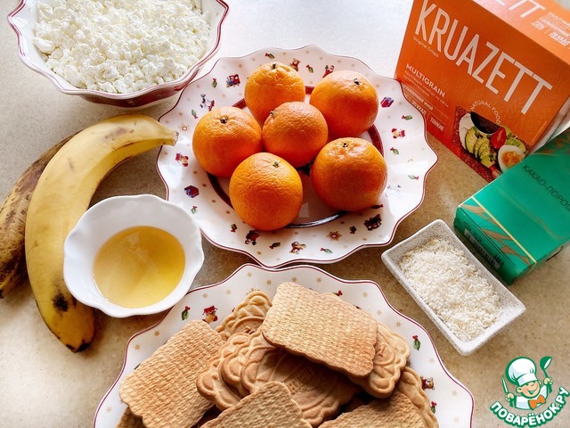 Ингредиенты для «Десертный рулет с мандаринами и хлебцами»: