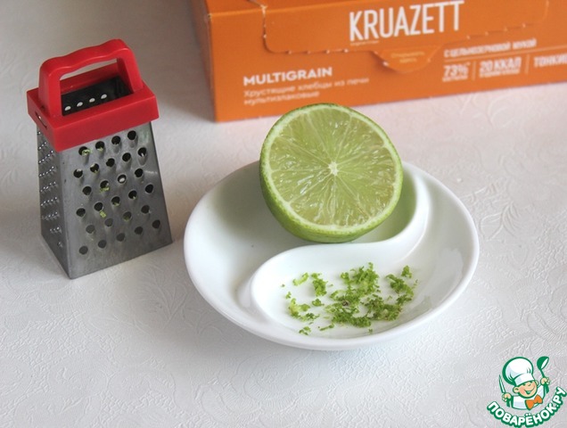 Лайм вымыть, обсушить, снять цедру и выдавить сок. Лайм можно заменить на лимон.