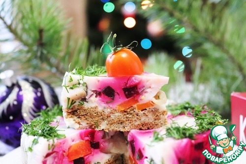 Рецепт «Закусочный торт-желе с селёдкой»: