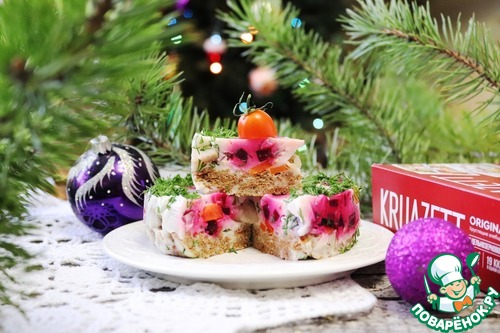 Вкусный, легкий и красивый закусочный торт с селёдкой и овощами. Очень советую приготовить! На праздничном столе смотрится очень аппетитно и ярко.