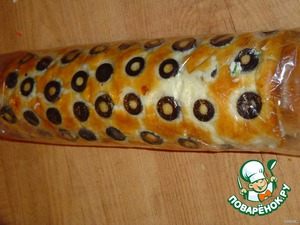 6. Когда готовый корж остынет, его надо перевернуть маслинами вниз.