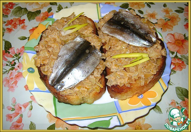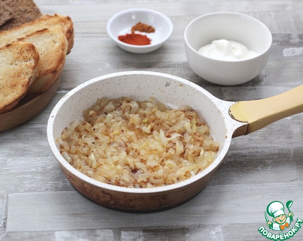 После тщательной дегустации поняла, что для намазки буду резать лук - как у тебя в рецепте, а для гарнира - полукольцами.