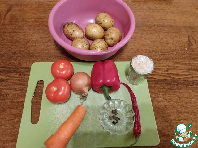 - Картофель (Средний, порезать кубиками) — 6 шт
