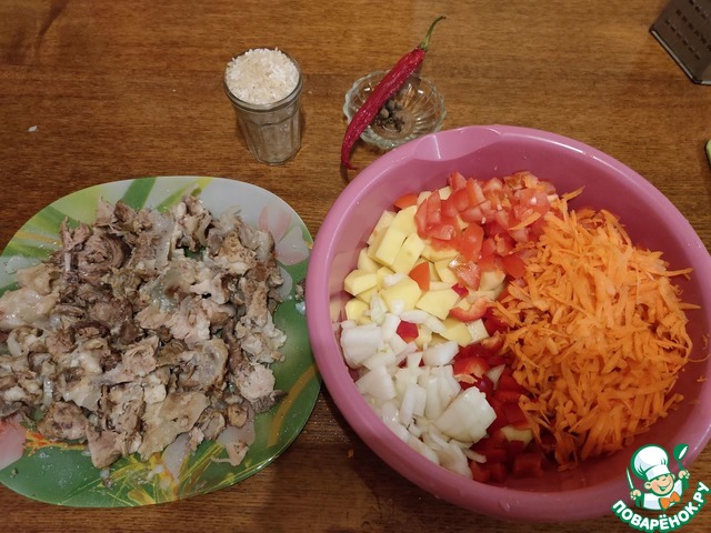 - Перец сладкий (Порезать кусочками) — 1 шт