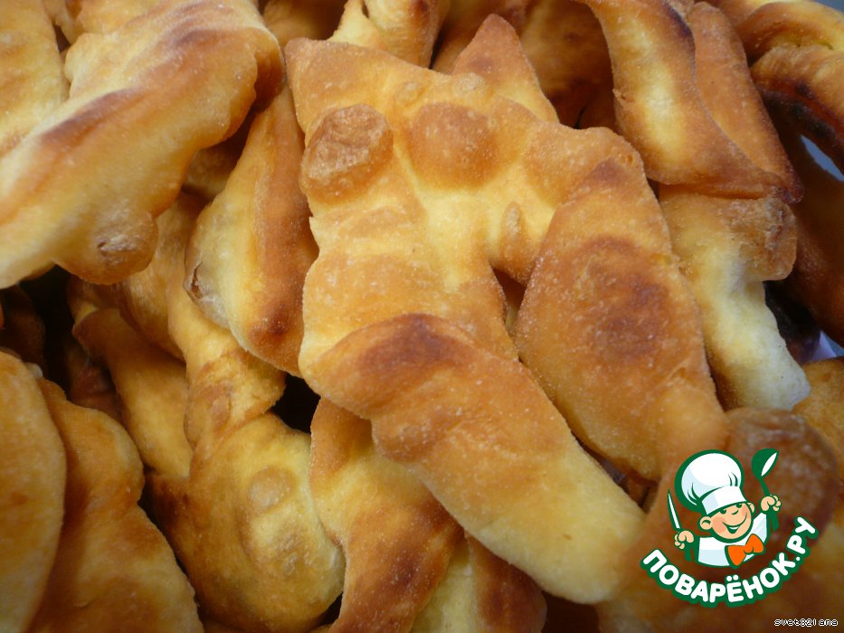 Обжариваем в растительном масле в глубокой посуде. Готовую сдобу посыпаем сахарной пудрой!