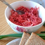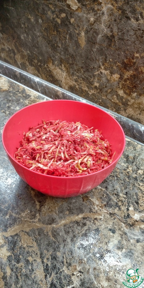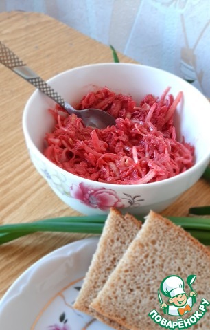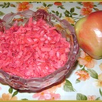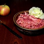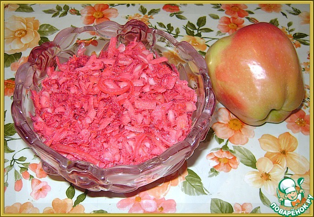 Если нет свеклы, то салат не особенно пострадает, но без яблока не начинайте!